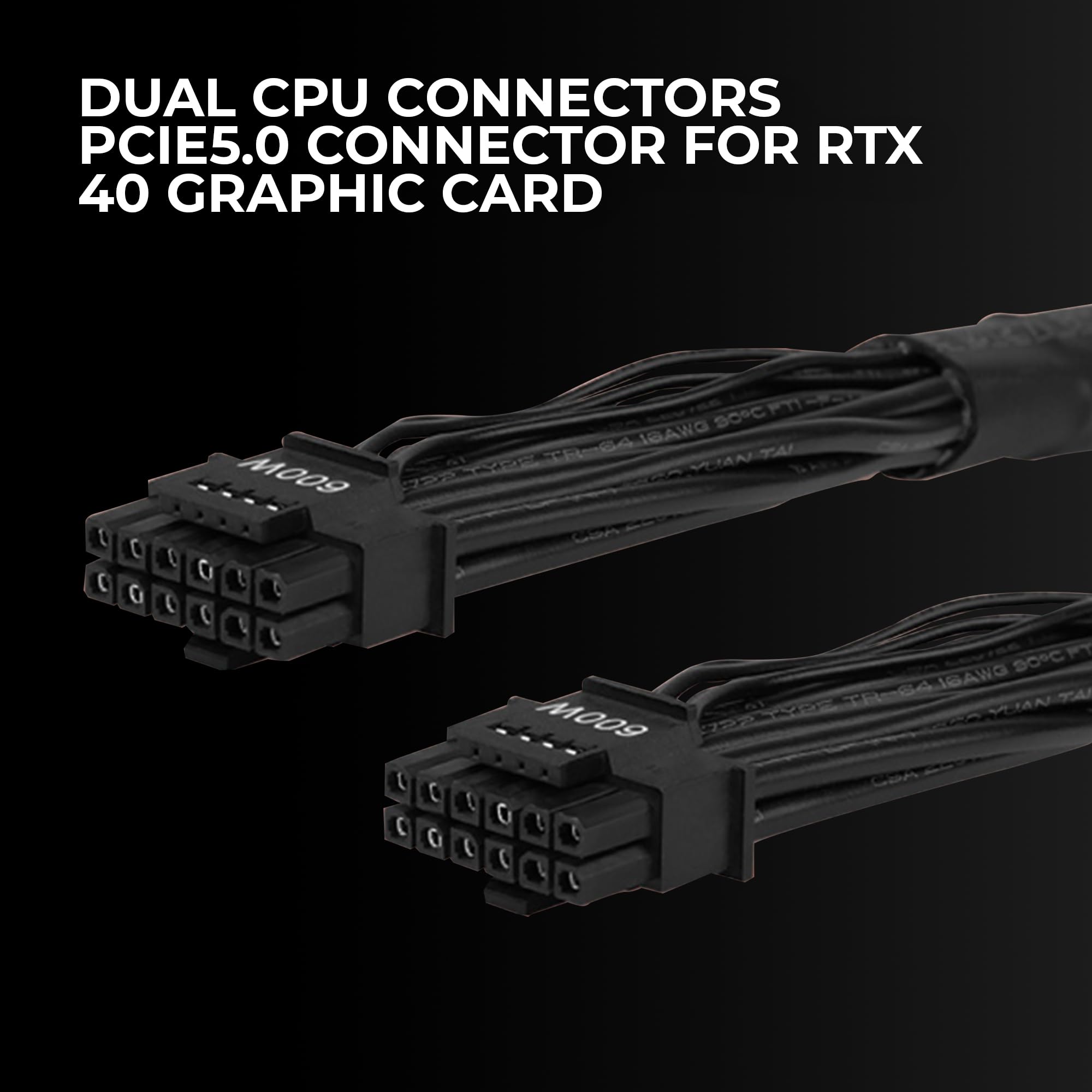 The cable selection on the Aerocool LUXPRO1000 PSU targets mainstream builds. Two PCIe 8-pin connectors provide enough power for graphics cards up to approximately 225W total draw (150W per connector plus 75W from the PCIe slot). This covers cards like the RTX 4060 Ti, RX 7600 XT, and previous-generation RTX 3060 Ti comfortably.