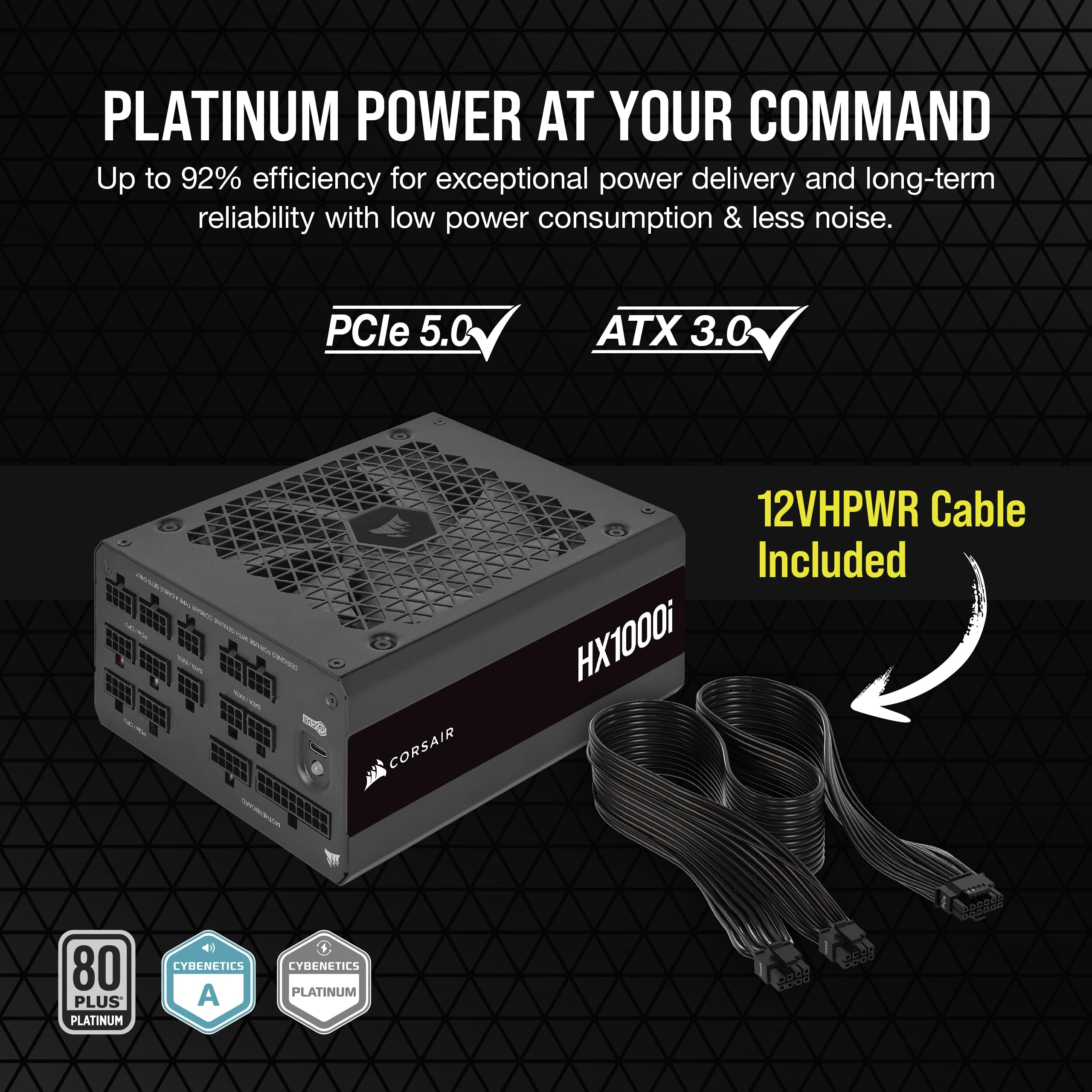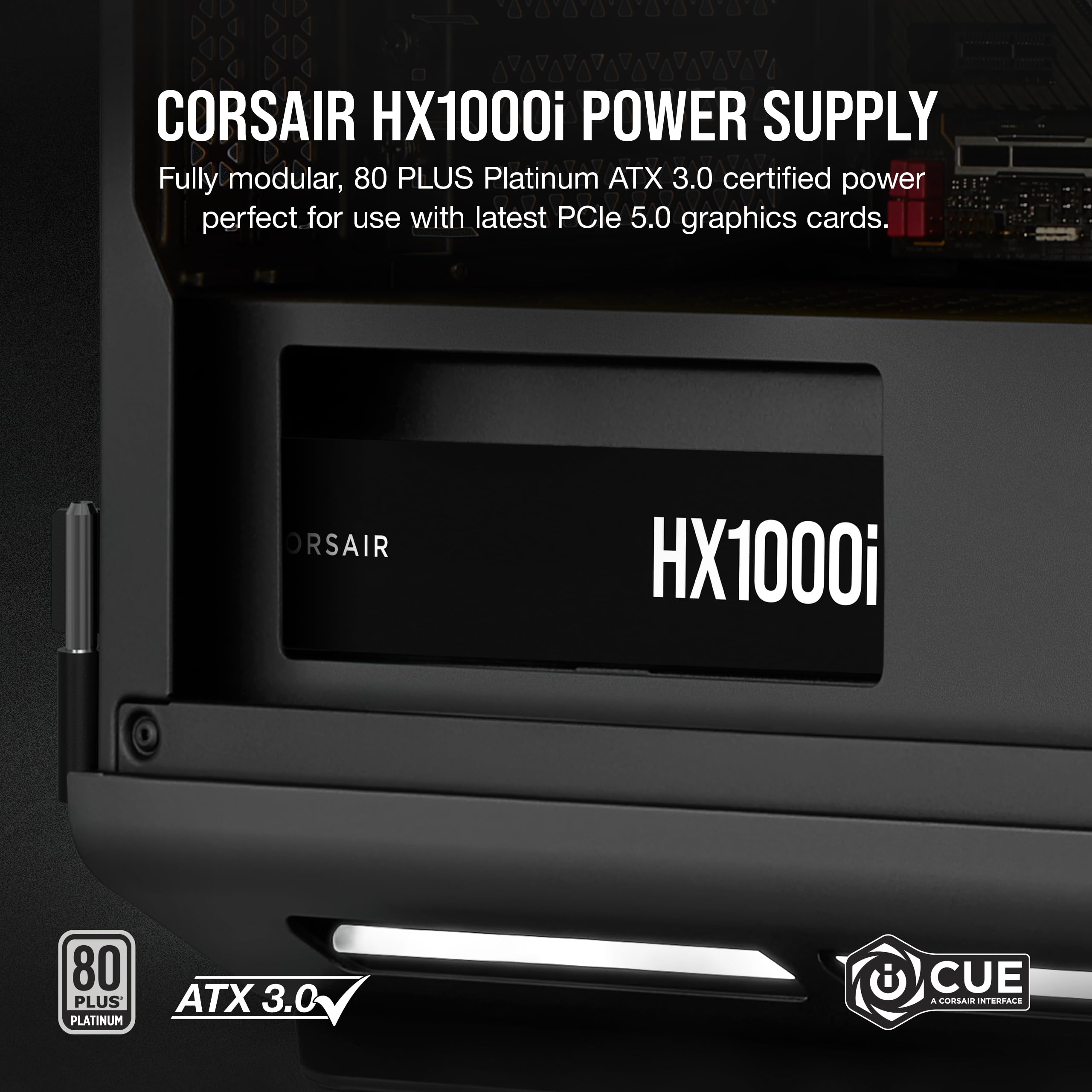 Corsair HX1000i Fully Modular Ultra-Low Noise ATX Power Supply - ATX 3.1 & PCIe 5.1 Compliant - Fluid Dynamic Bearing Fan - CORSAIR iCUE Software Compatible - 80 PLUS Platinum Efficiency - Black