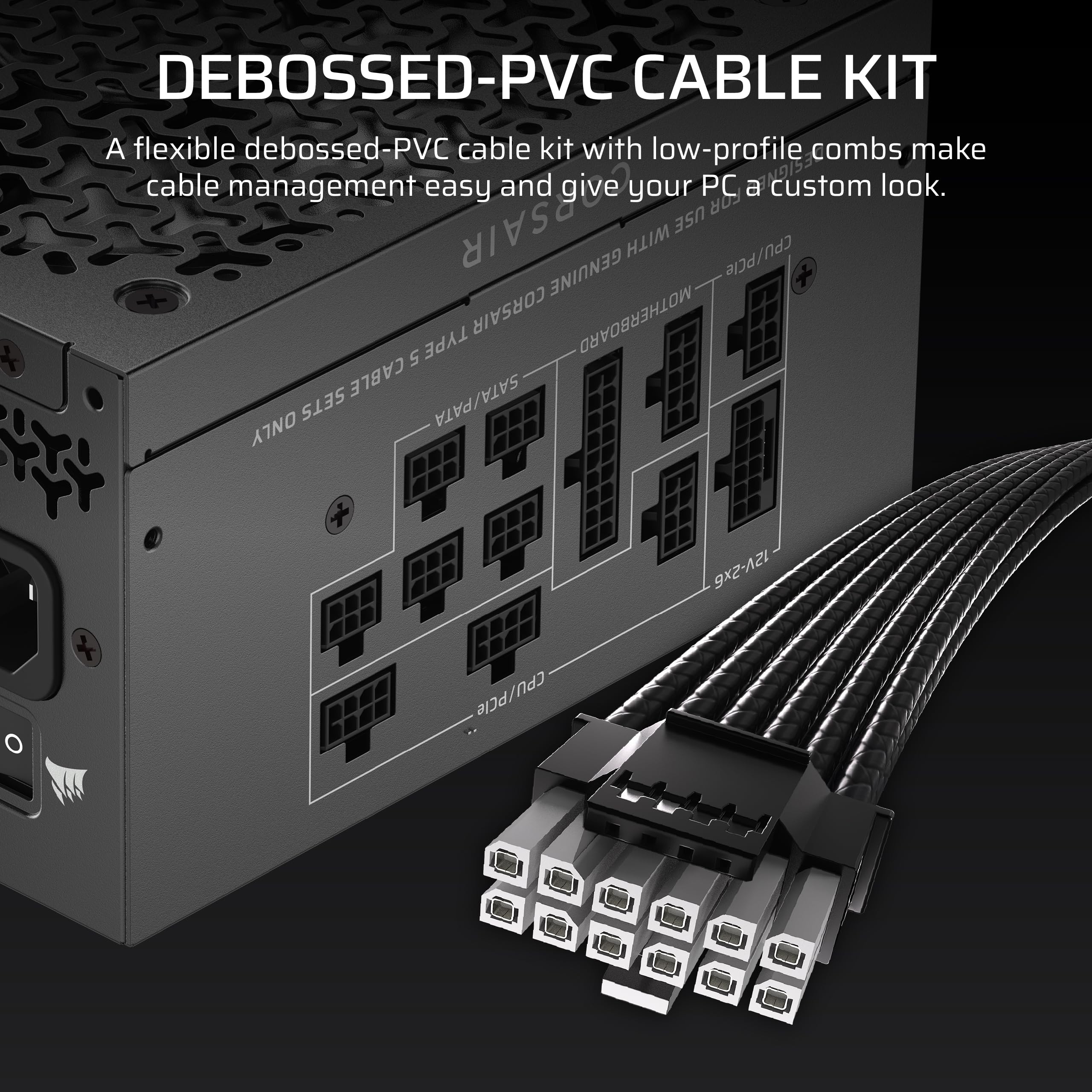 - Debossed PVC Cable Kit: Ultra flexible cable kit sets a new standard for cable management, with included low-profile combs making for a neater look and easier overall build