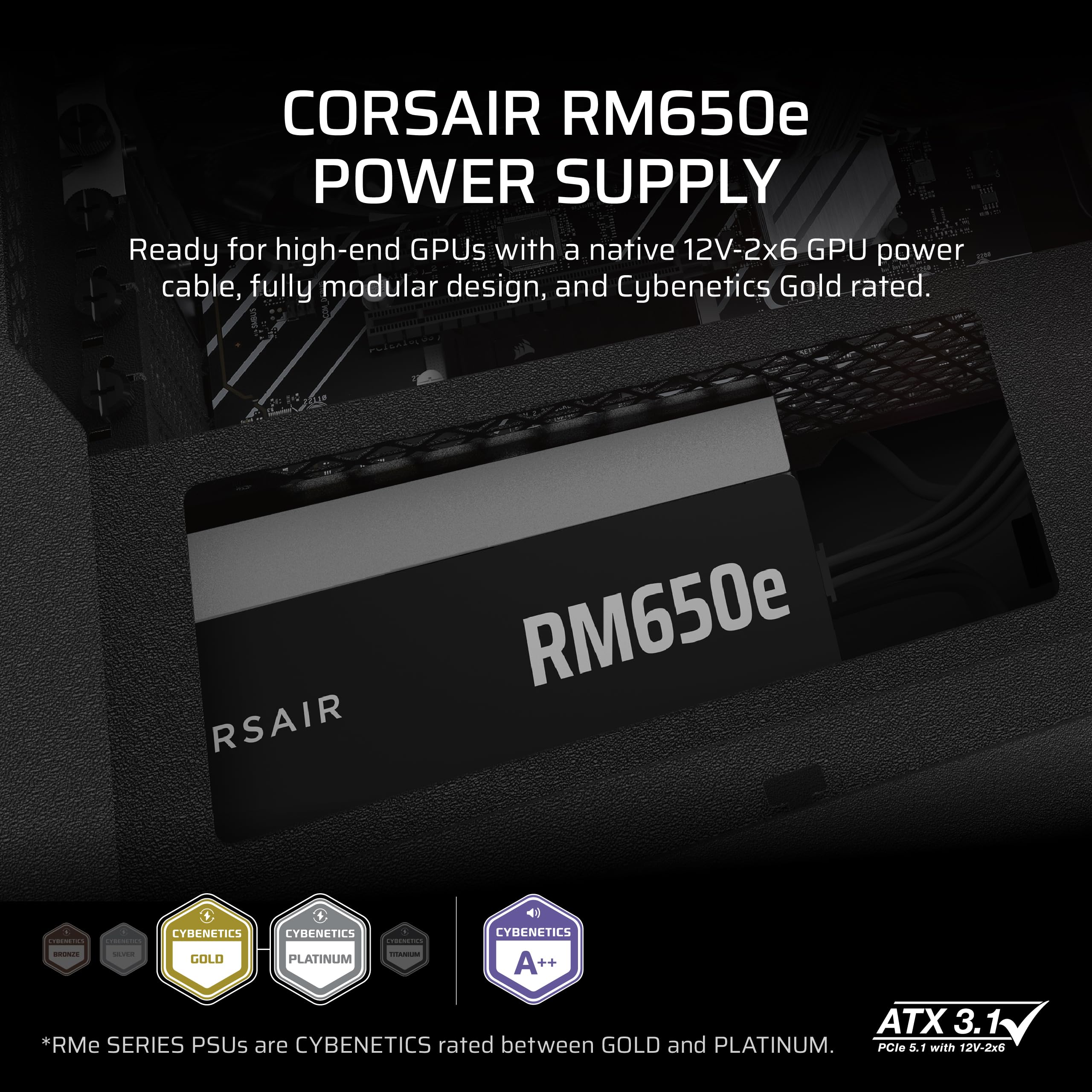 CORSAIR RM650e (2025) Fully Modular Low-Noise ATX Power Supply with 12V-2x6 Cable – ATX 3.1 & PCIe 5.1 Compliant, Cybenetics Gold Efficiency, 105°C-Rated Capacitors, Modern Standby Mode – Black