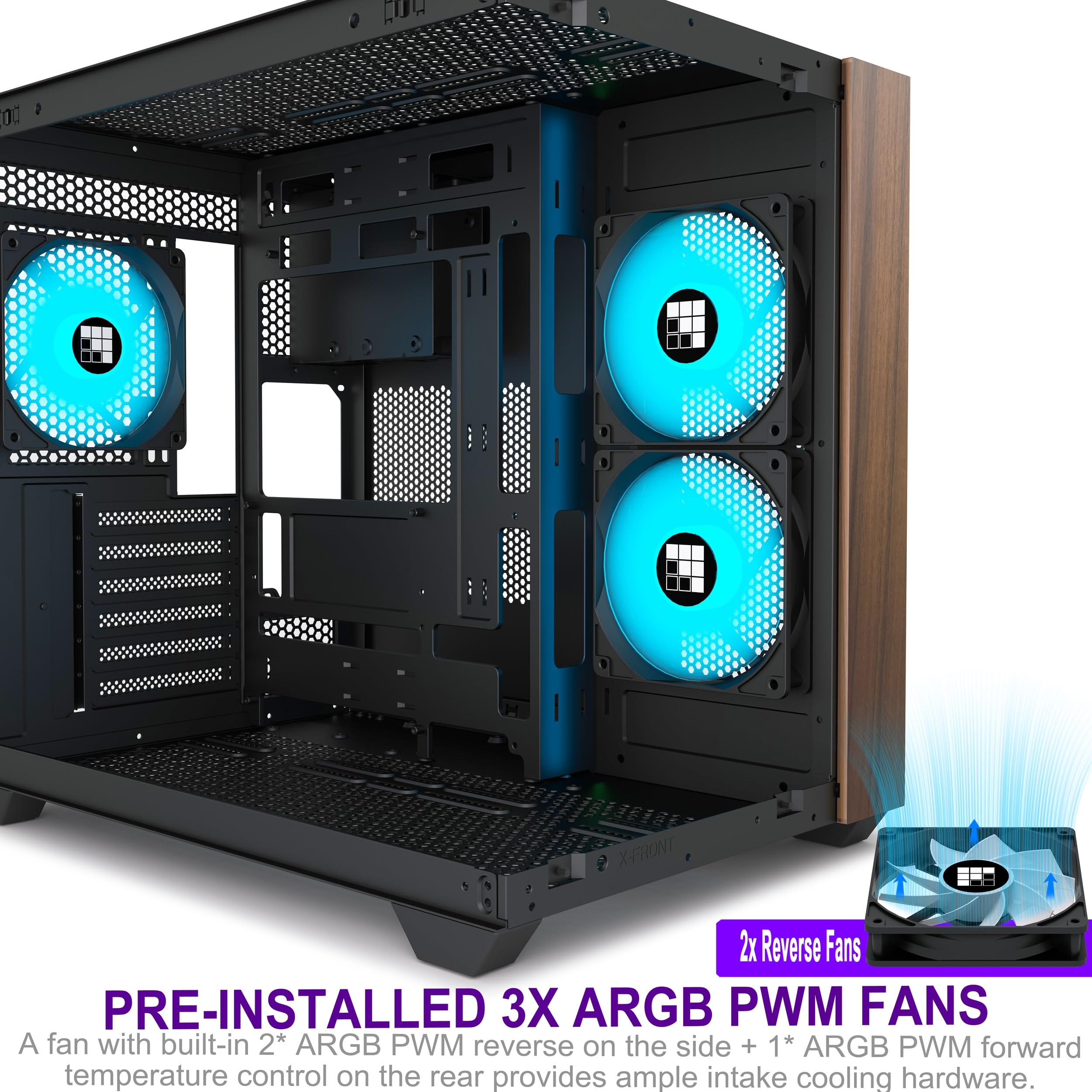 FOIFKIN M3 PC Case -Walnut front panel, Pre-Installed 3 PWM ARGB Fan, ATX Mid-Tower Gaming PC Case, 270° Panoramic Glass whit Type-C (Black, M3)
