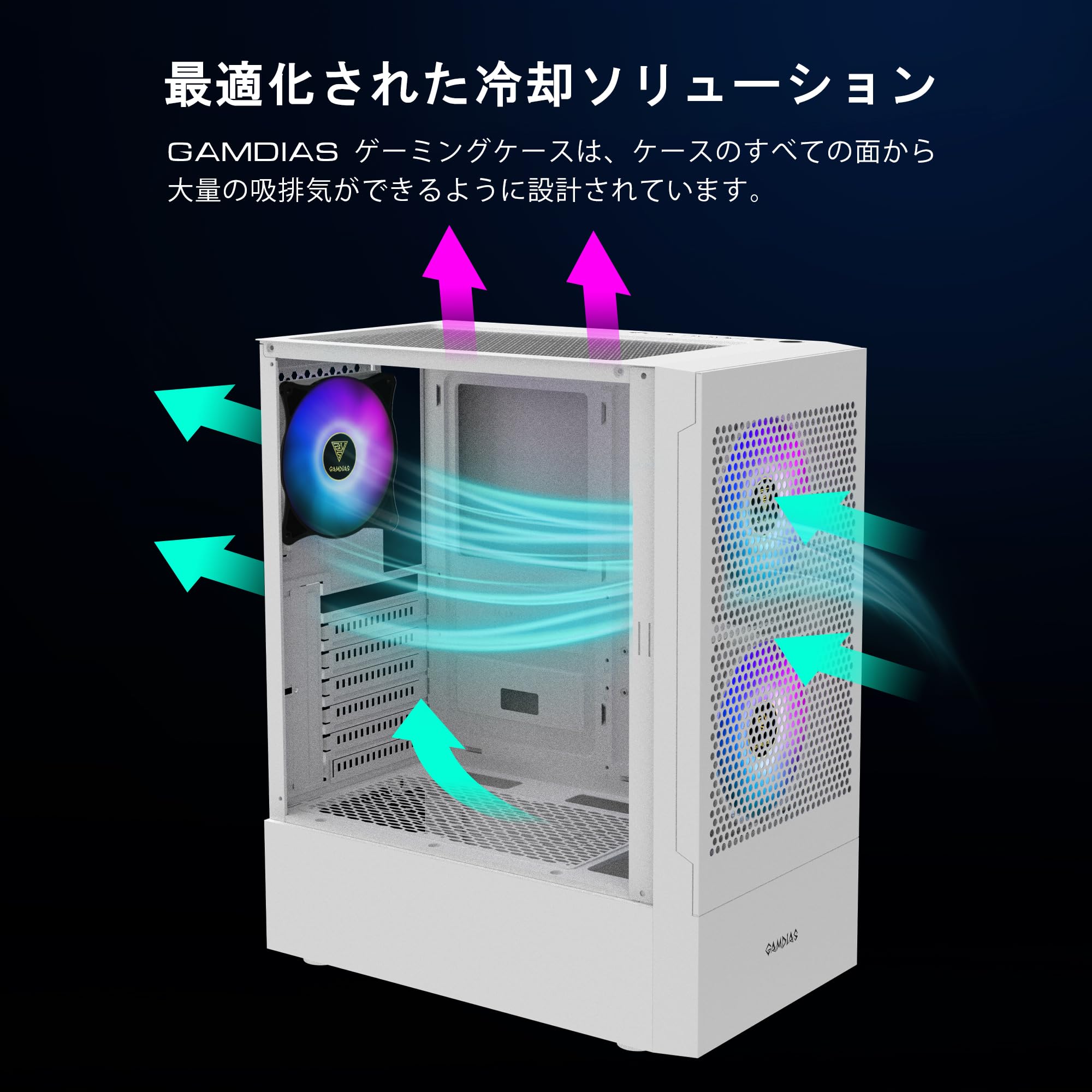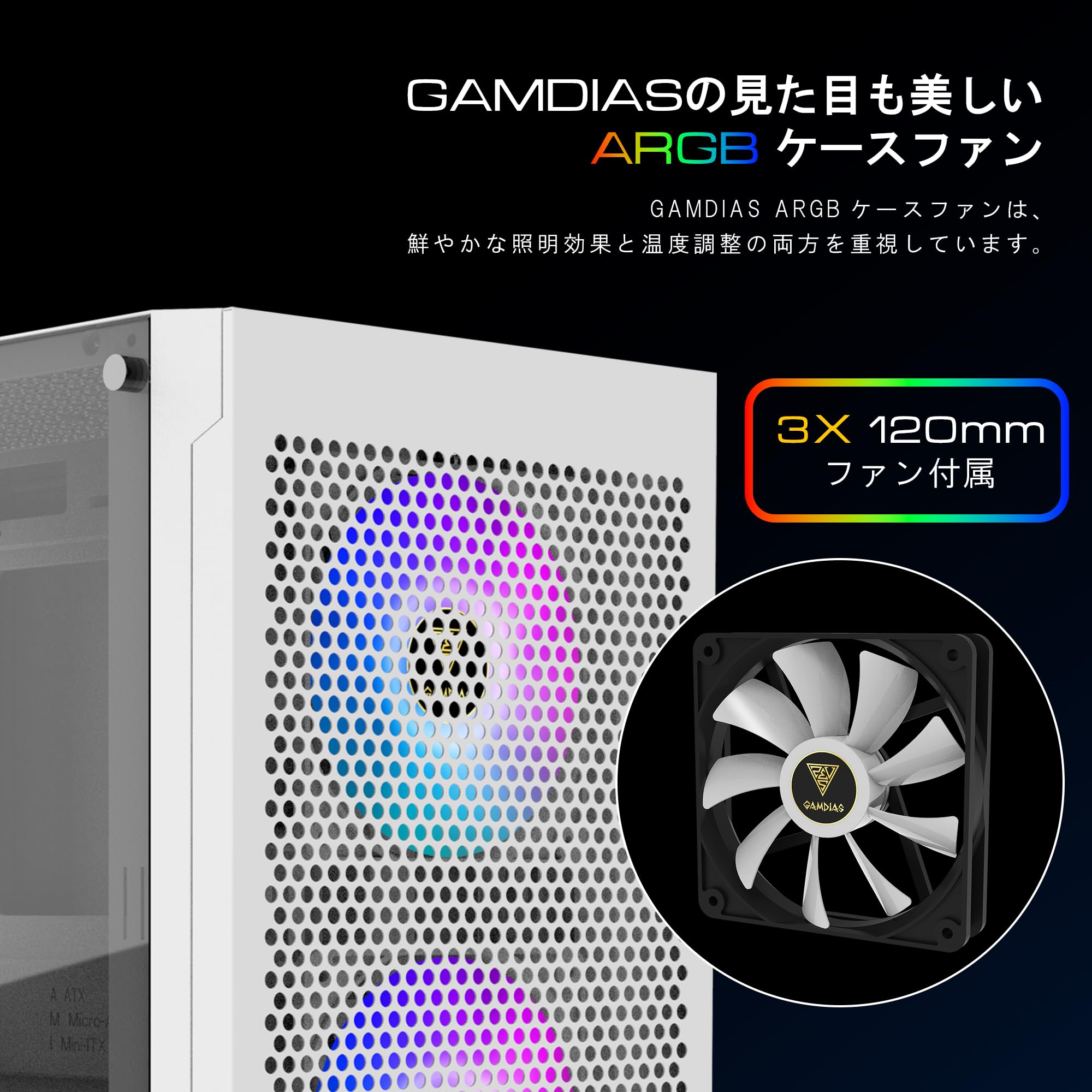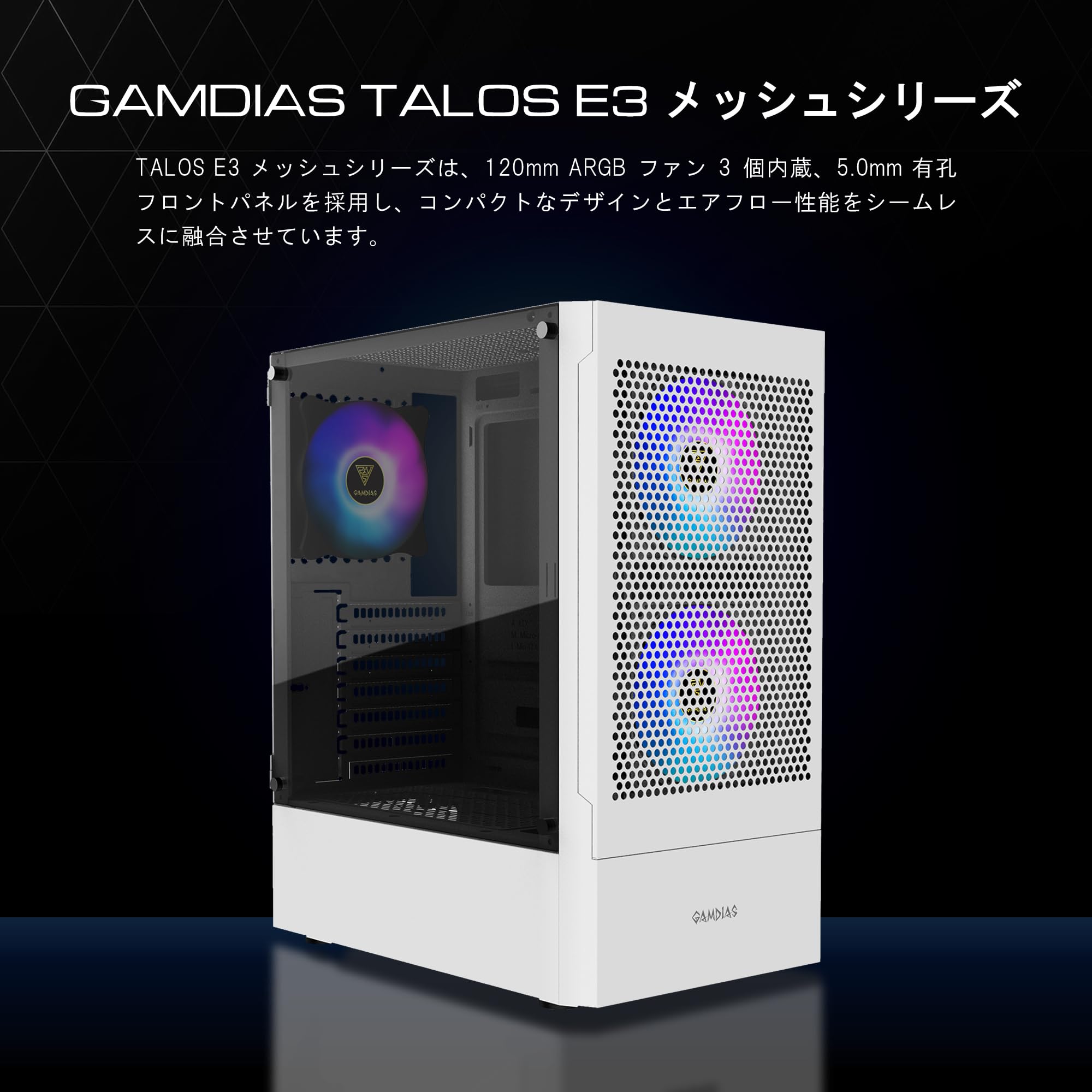 GAMDIAS TALOS E3 MESH WH Gaming pc case, Mid-Tower ATX Case with Side Tempered Glass Panel and a Magnetic Dust Filter & 3 Built-in 120mm ARGB Fans, Tool-Free Installation, Mesh Front Panel