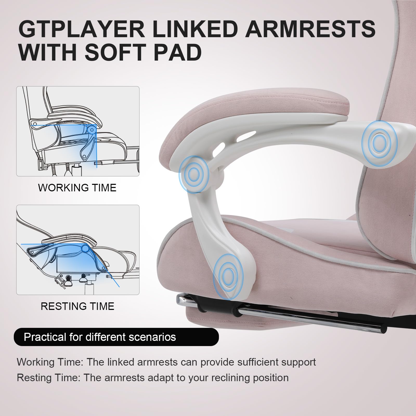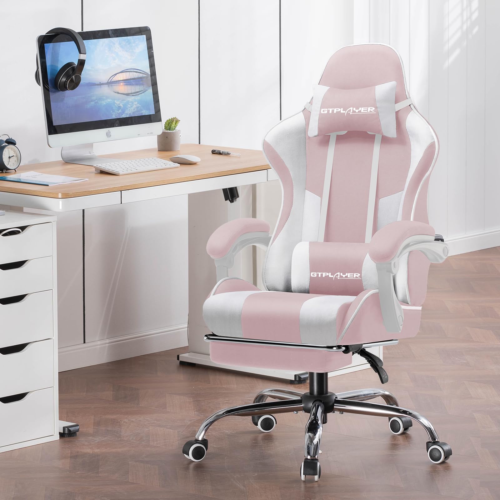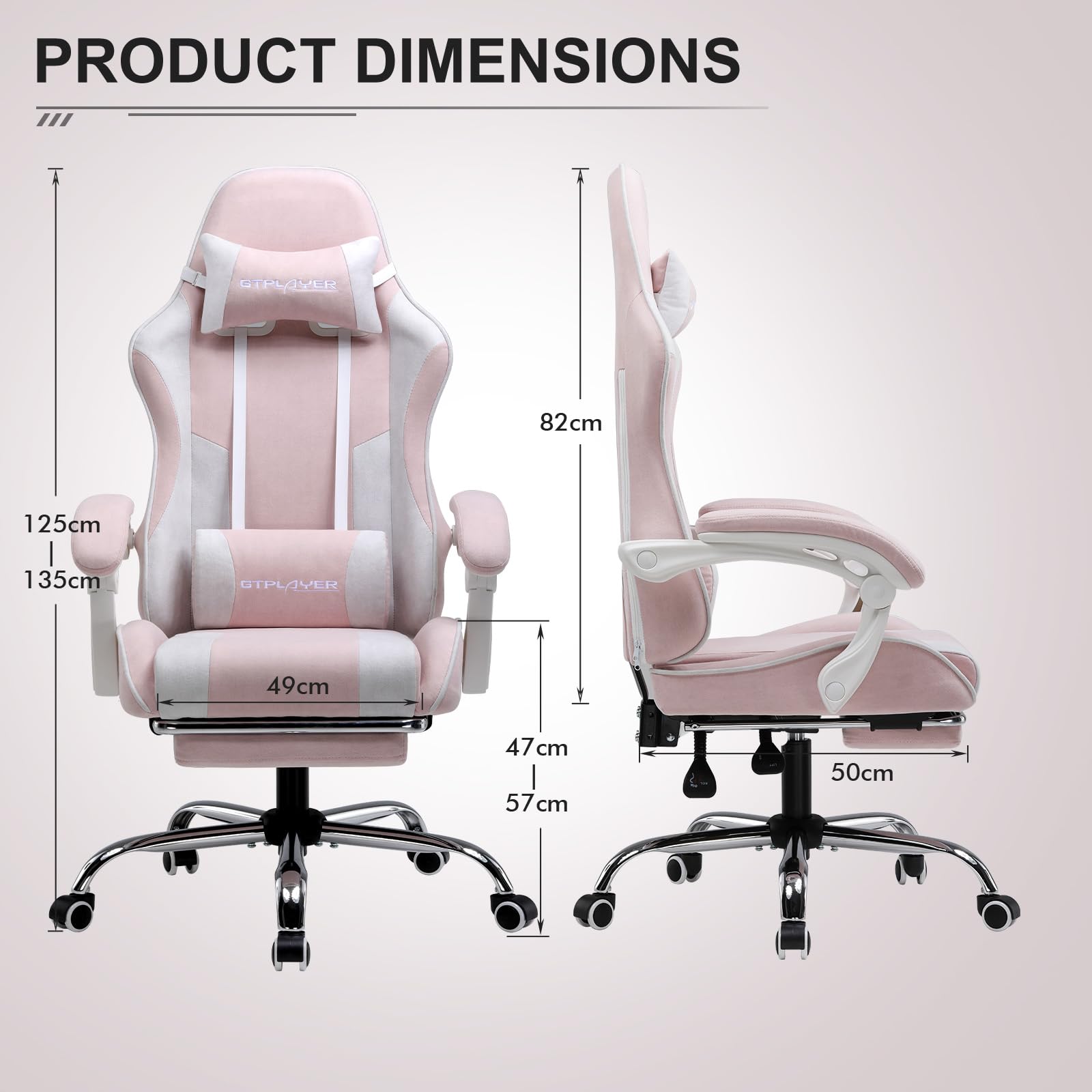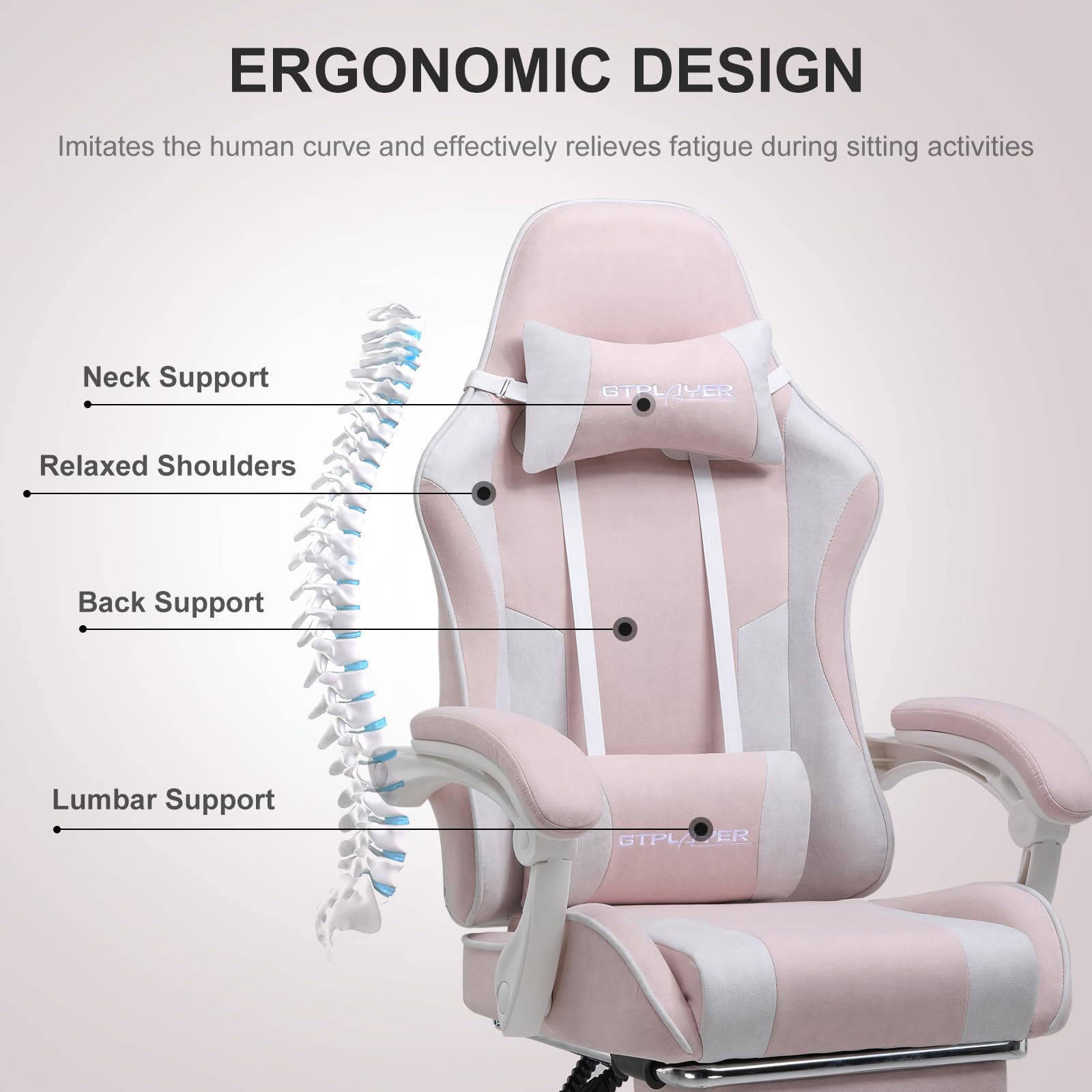 GTPLAYER Fabric Gaming Chair, Massage Ergonomic Computer Chair with Footrest, Lumbar Support, Headrest, Height Adjustable Home Office Reclining PC Racing Chairs Pink if this sounds like it matches your needs, but I’ve got more details on the comparison front coming up.