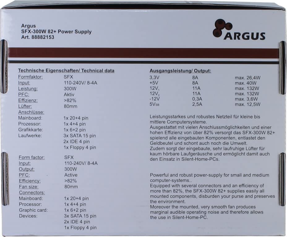 | Inter-Tech 300W SFX-M300 SFX Retail PSU | 300W | 80+ Bronze | Unknown | 5 years | GBP 45.33 |
