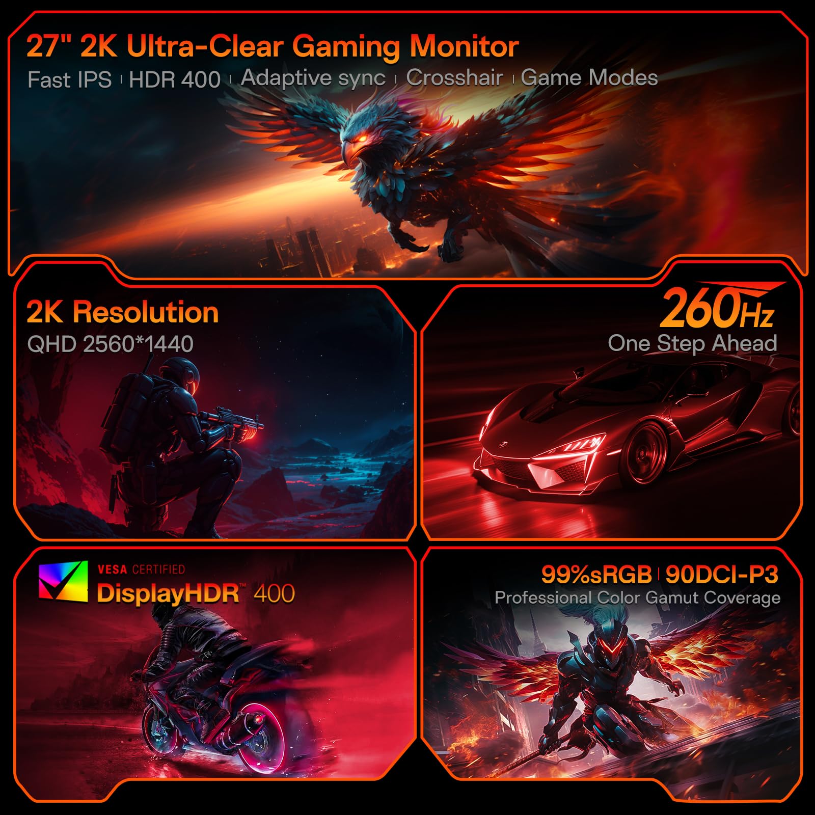 - 27" QHD Monitor DISPLAY: Experience gaming monitor crisp visuals with a 27-inch QHD (2560x1440) resolution, offering stunning clarity for gaming, content creation, and multimedia