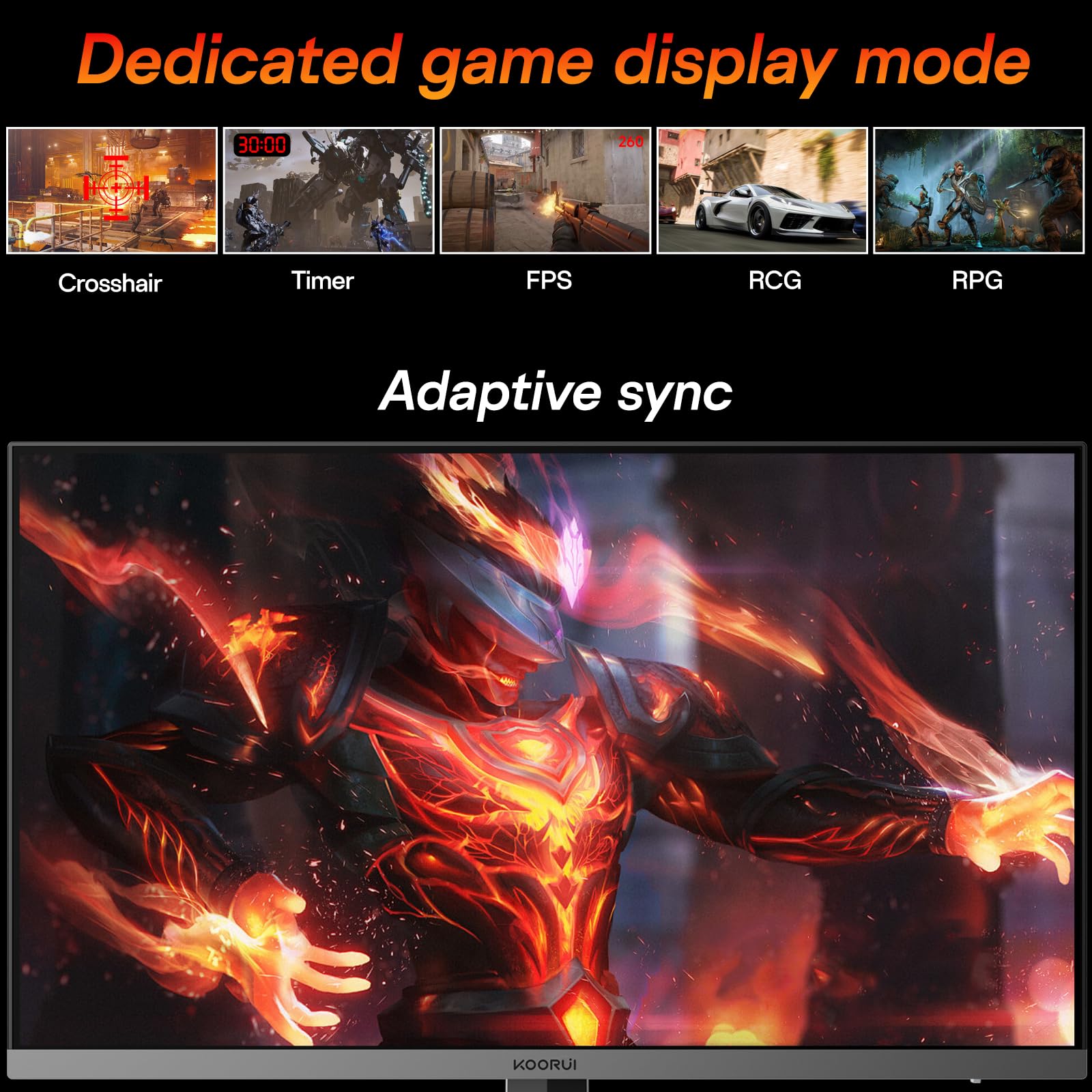KOORUI 27 inch 1440P Gaming Monitor,260hz (support 240hz) 2K (2560x1440p),Adaptive Sync, HDR400, Support DP HDMI G2721X