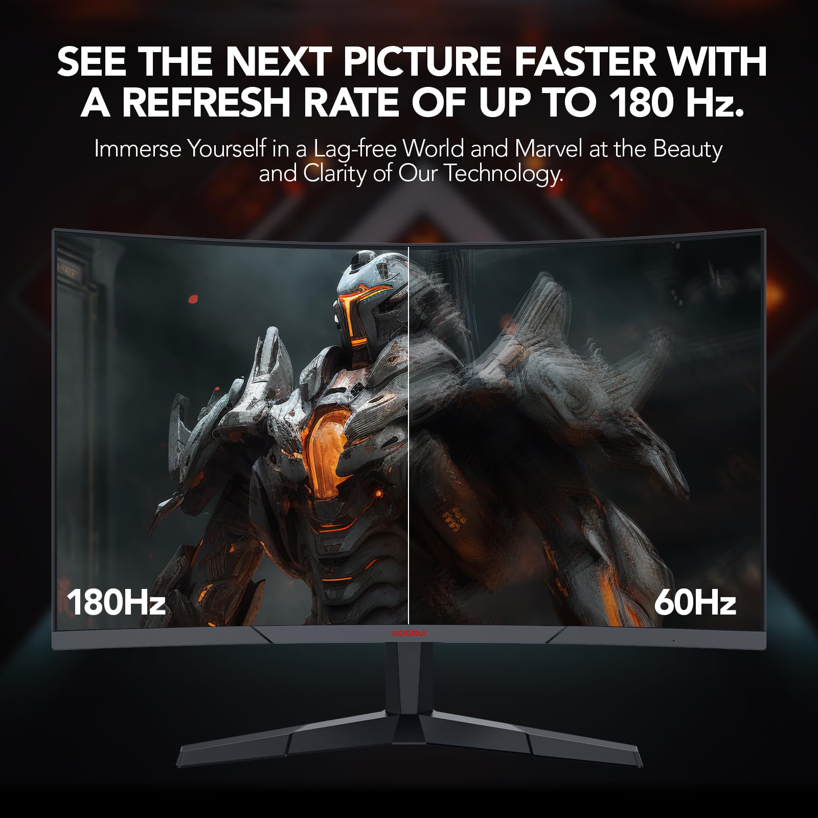 Koorui 27 Inch Gaming Monitor, Qhd 1440P Curved Monitors 180Hz Va 1Ms 1500R Pc Screen With Adaptive Sync, Hdmi/Dp, Vesa Compatible, Tilt Adjustable, Eye Care