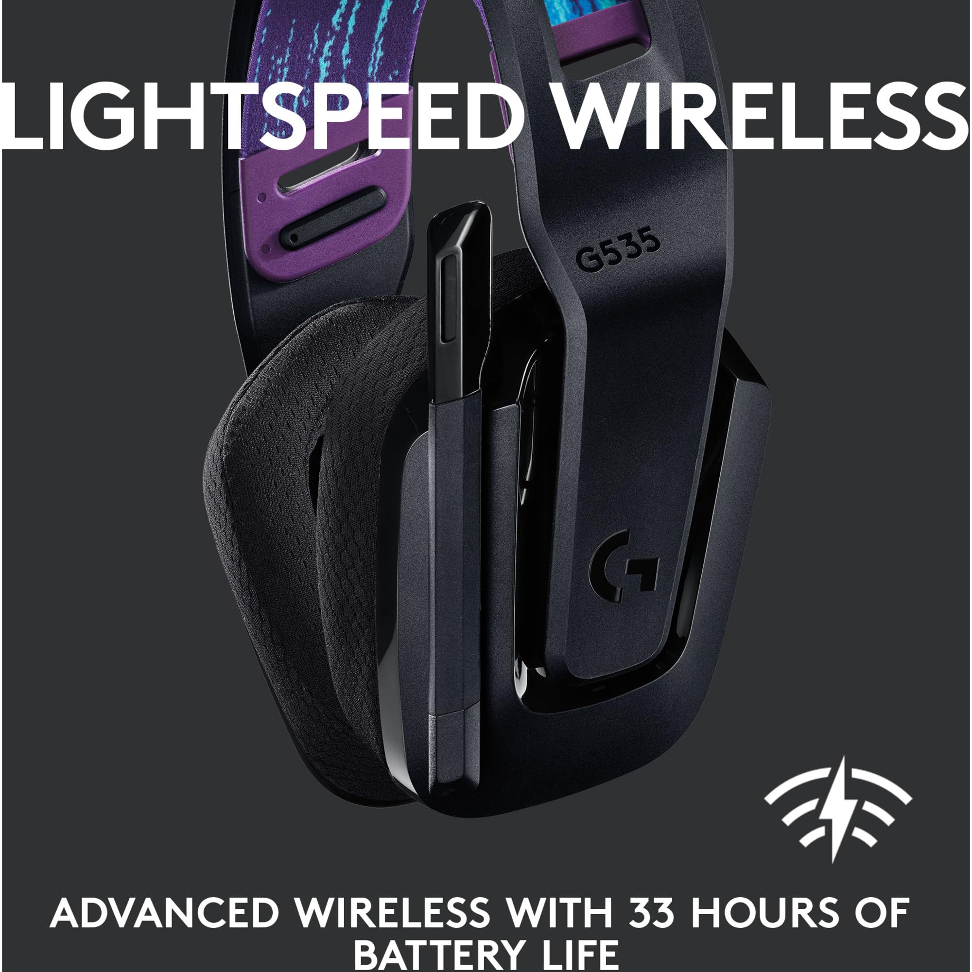 Logitech G535 LIGHTSPEED Wireless Gaming Headset - Lightweight on-ear headphones, flip to mute mic, stereo, compatible with PC, PS4, PS5, USB rechargeable - Black