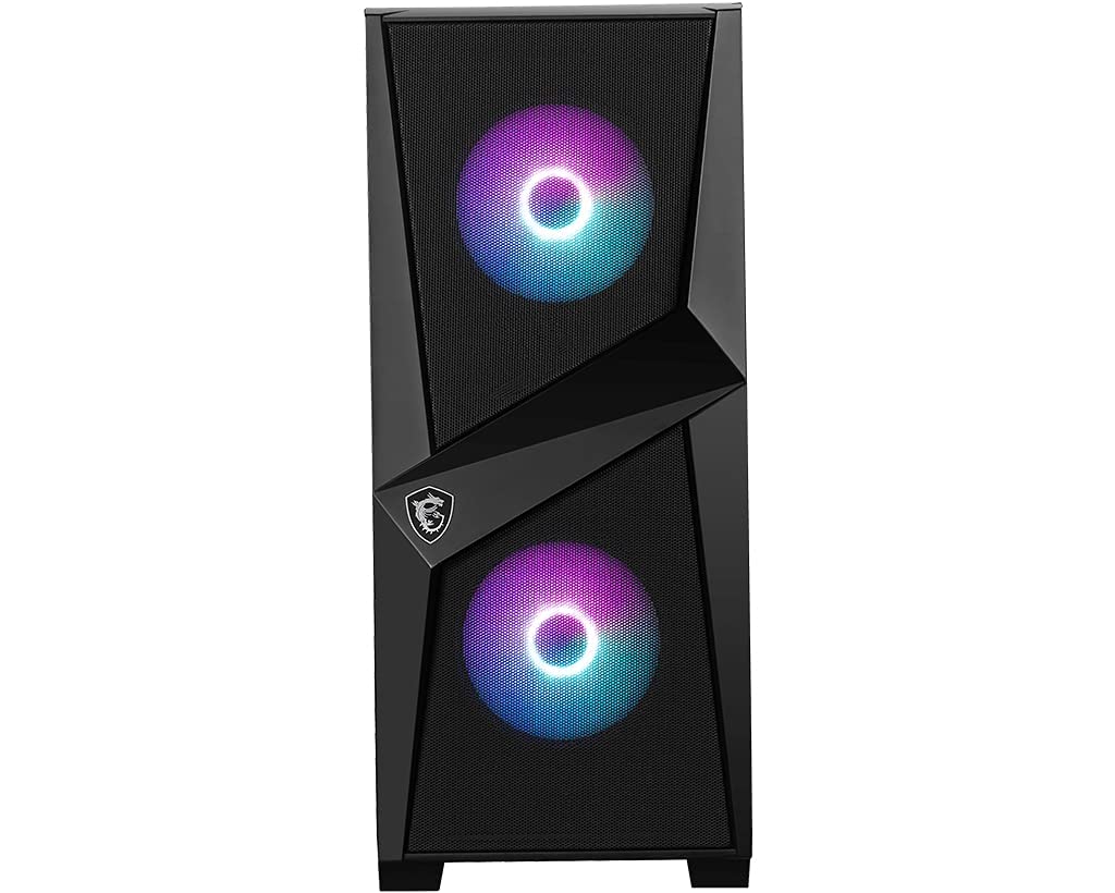 MSI MAG FORGE 100R Mid Tower Gaming Computer Case (Black, 2x 120mm ARGB PWM Fan, 1x 120mm Fan, 1-6 ARGB Hub, Tempered Glass, MSI Center, ATX, mATX, mini-ITX)