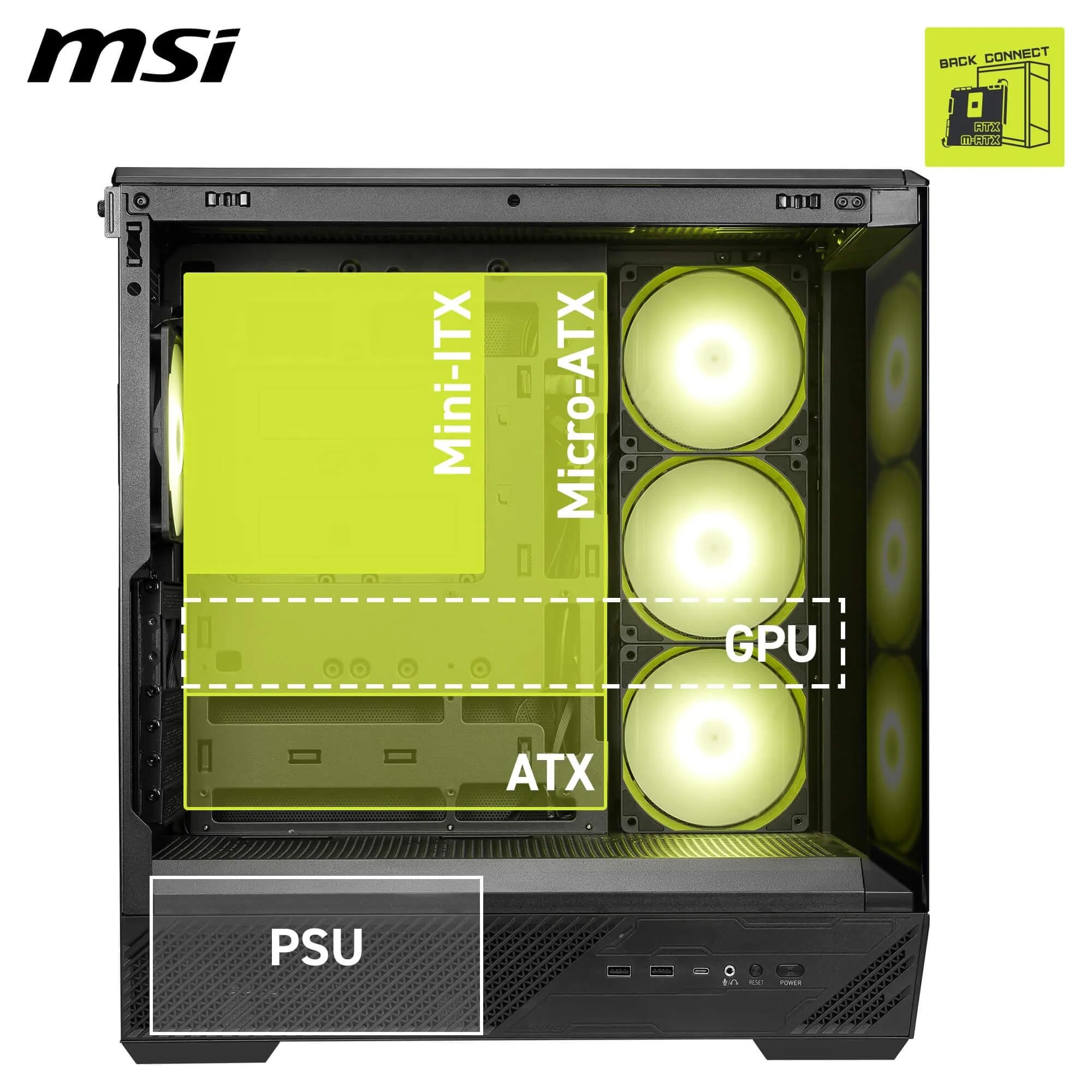 MSI MAG PANO 130R PZ - Mid-tower Gaming PC Case - Supports GPU up to 400 mm in length, Removable Dust Filters, USB 20Gbps (Type-C), Back-connect ATX & Micro-ATX Motherboard support