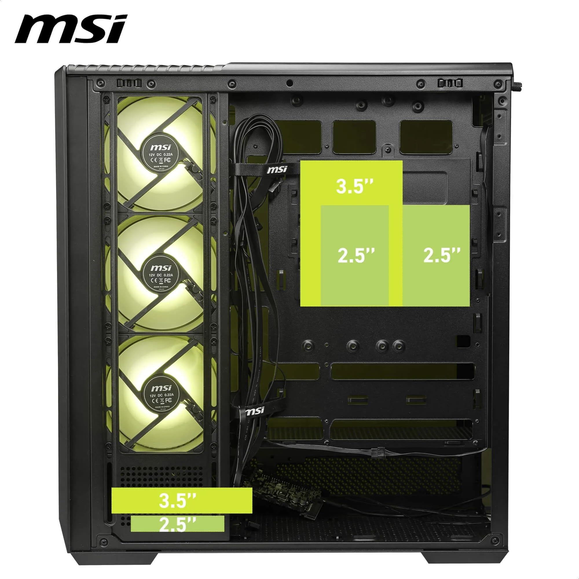 - COOLING SYSTEM - MAG PANO 130R PZ supports up to 10 fans and an increased number of vents to optimize heat dissipation. It comes with 4 x 120 mm ARGB pre-installed fans at the side and rear panel.