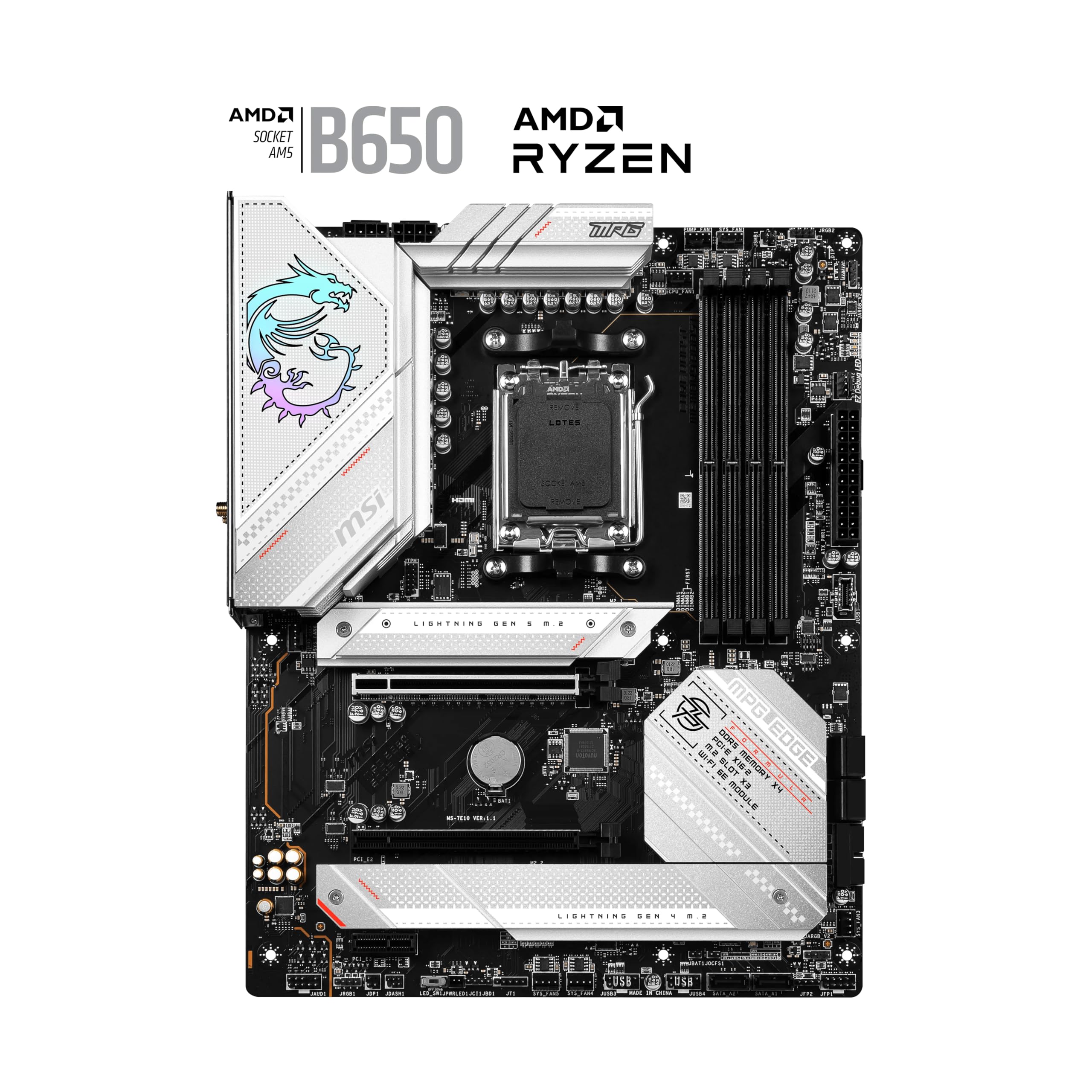 MSI MPG B650 EDGE WIFI Motherboard, ATX - Supports AMD Ryzen 9000 CPUs, AM5 - 14 phases DRPS CPU power 80A VRM, DDR5 Memory Boost 6600+MHz/OC, 2 x PCI-E 4.0 x16, 1 x M.2 Gen5, 2 x M.2 Gen4, Wi-Fi 6E