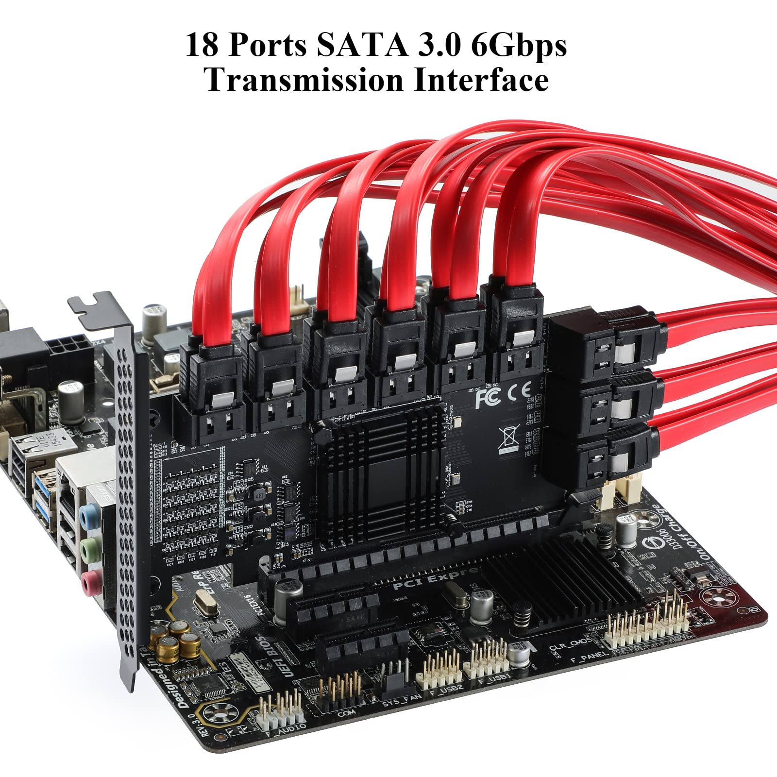 - 【18 Ports PCIe SATA Card】 --- Equipped with 18 SATA 3.0 interfaces and supports connection of 18 SATA hard drives at same time, this SATA controller expansion card will provided up to 6Gbps transmission speed for your computer.