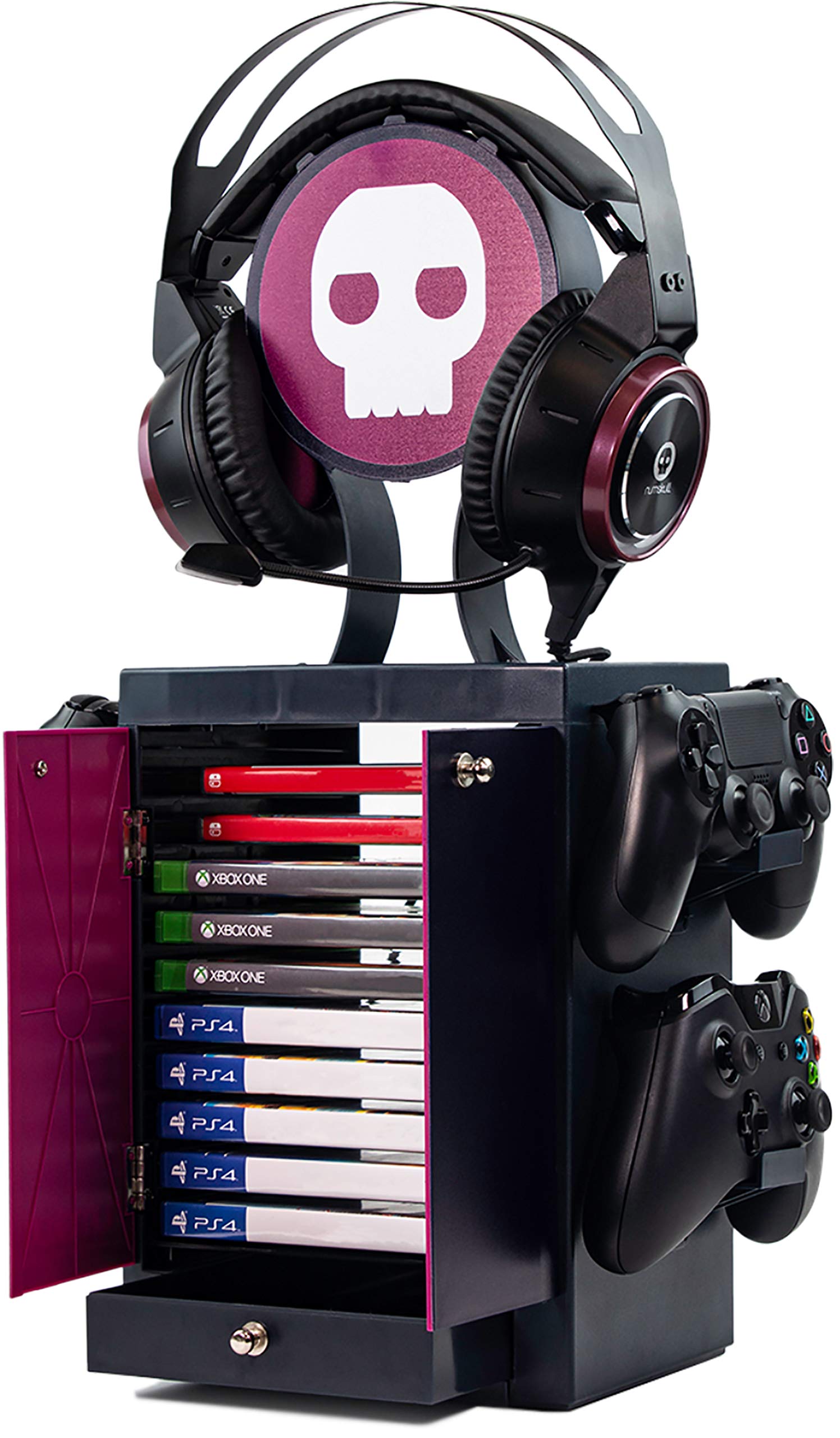 Numskull Official Gaming Accessory Locker &Amp; Storage Stand – Holds 10 Games/Dvds, 4 Controllers, Headset, And Accessories – Durable &Amp; Compact Organizer