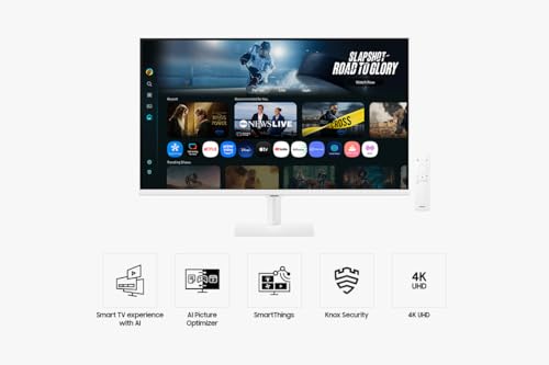 Samsung LS32FM703UUXXU 32" 4K Ultra HD HDR10 Smart Monitor with Speakers - White - 3840x2160, USB-C, HDMI, WiFi, Bluetooth, Smart Hub for TV streaming, Catch Up Apps and Gaming Hub