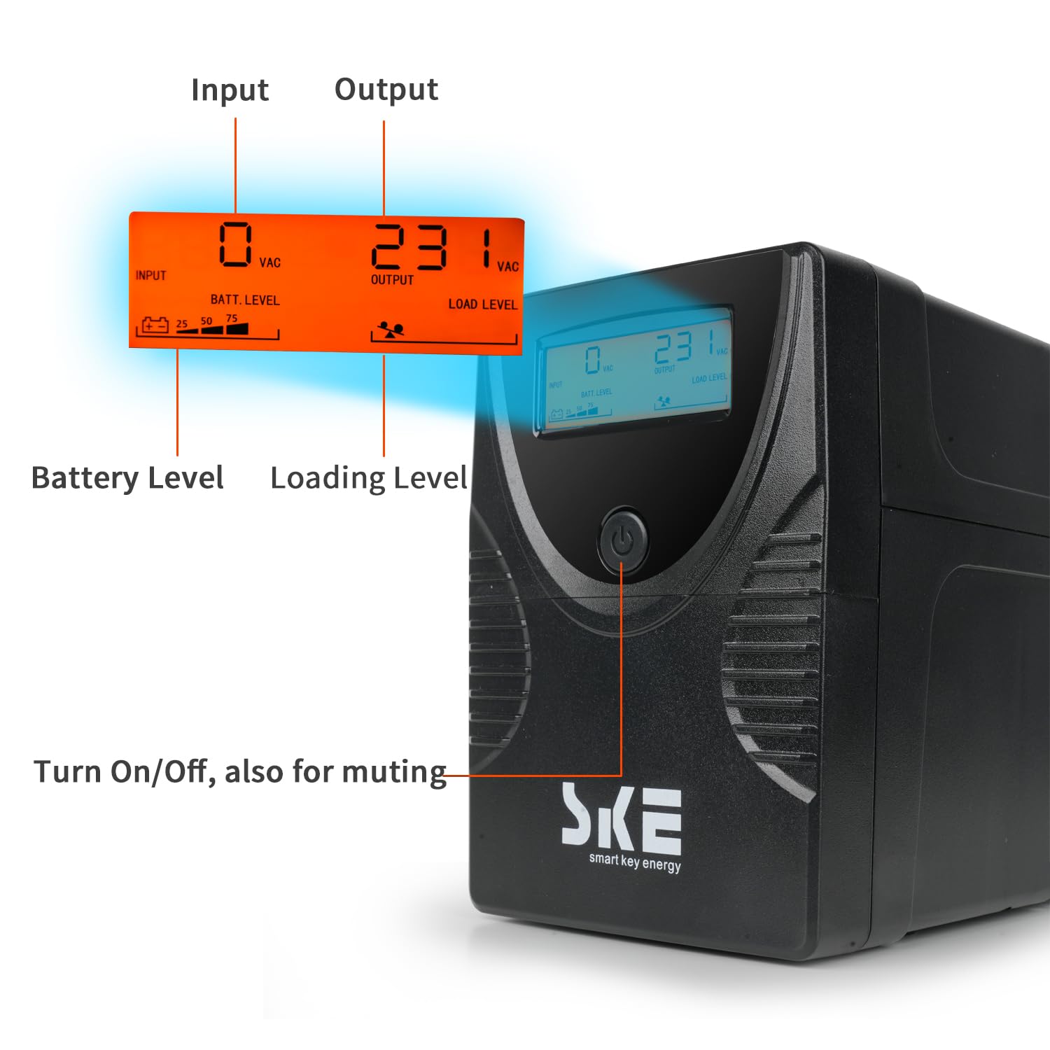 SKE 1500VA/900W UPS Battery Backup & Surge Protector UPS Battery Backup Unit for Computer Router Modem Uninterruptible Power Supply