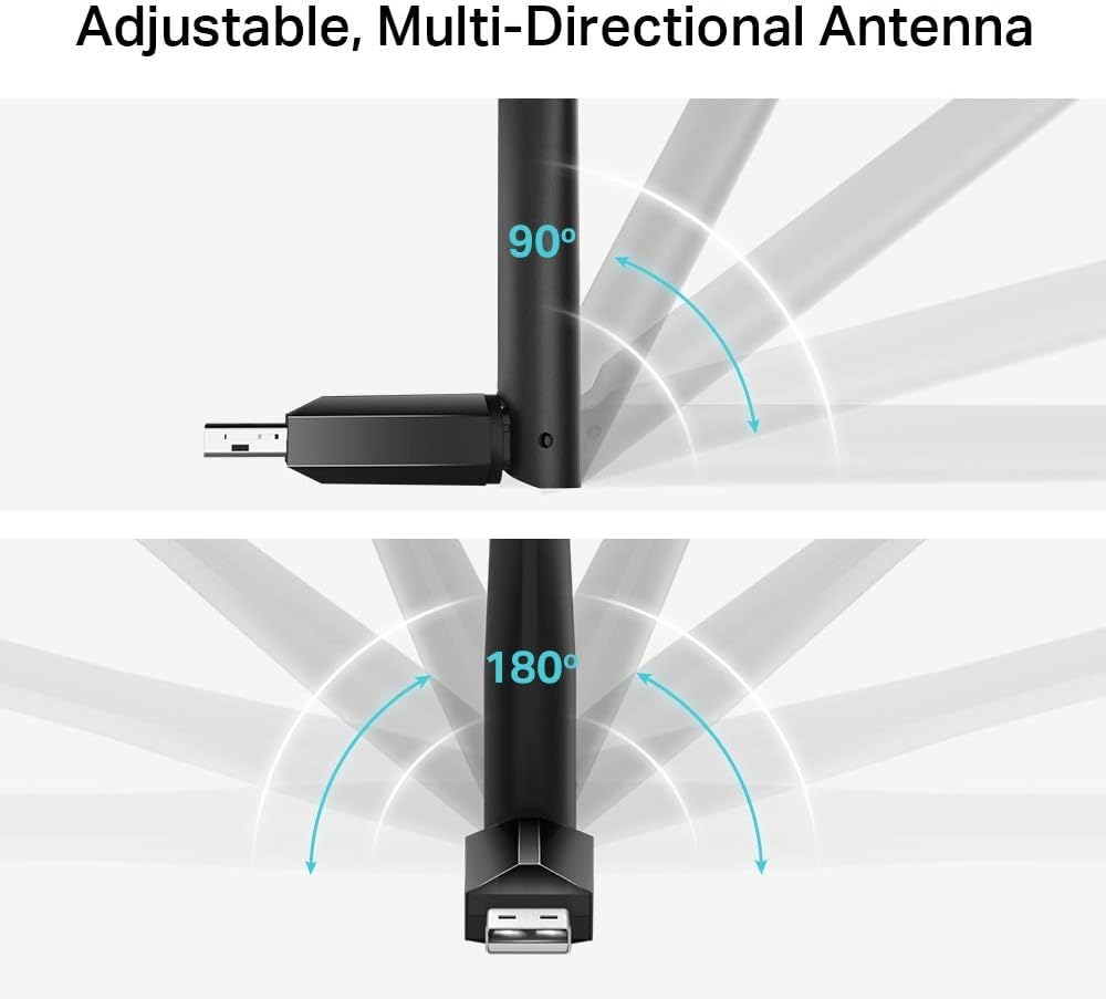 - High-Gain Antenna A 5dBi high-gain antenna greatly enhances the reception and transmission signal strength of the USB adapter