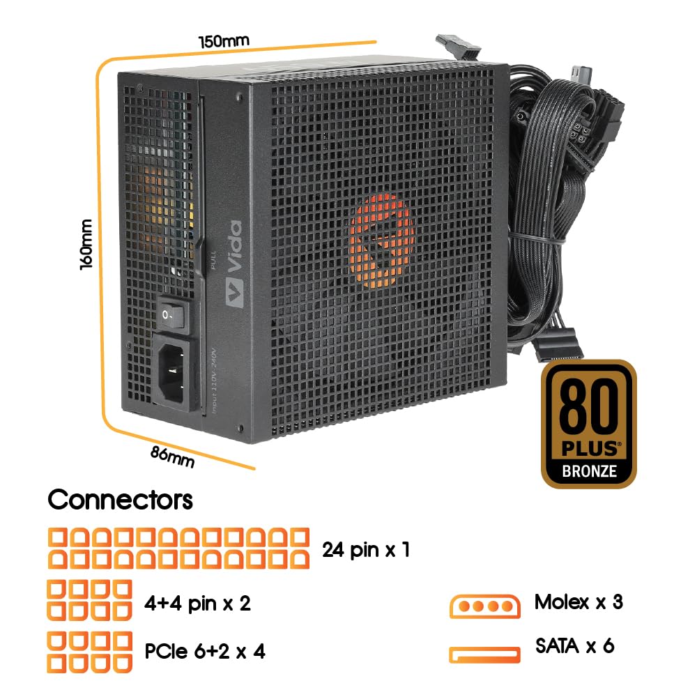 | VIDA 650W Heracles Black | 650W | 80+ Bronze | Unknown | 5 years | £46.99 |